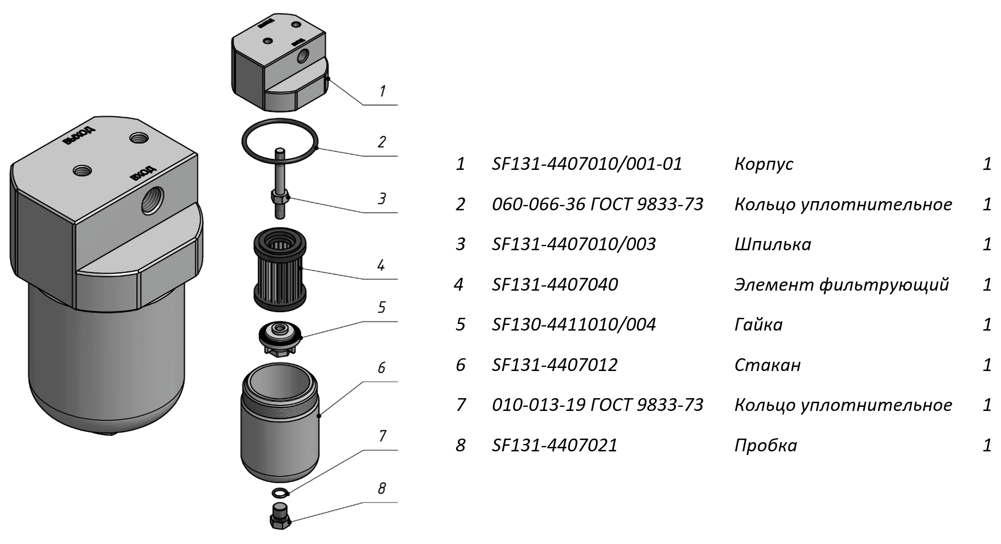 Состав фильтра SF131-4407010-01: